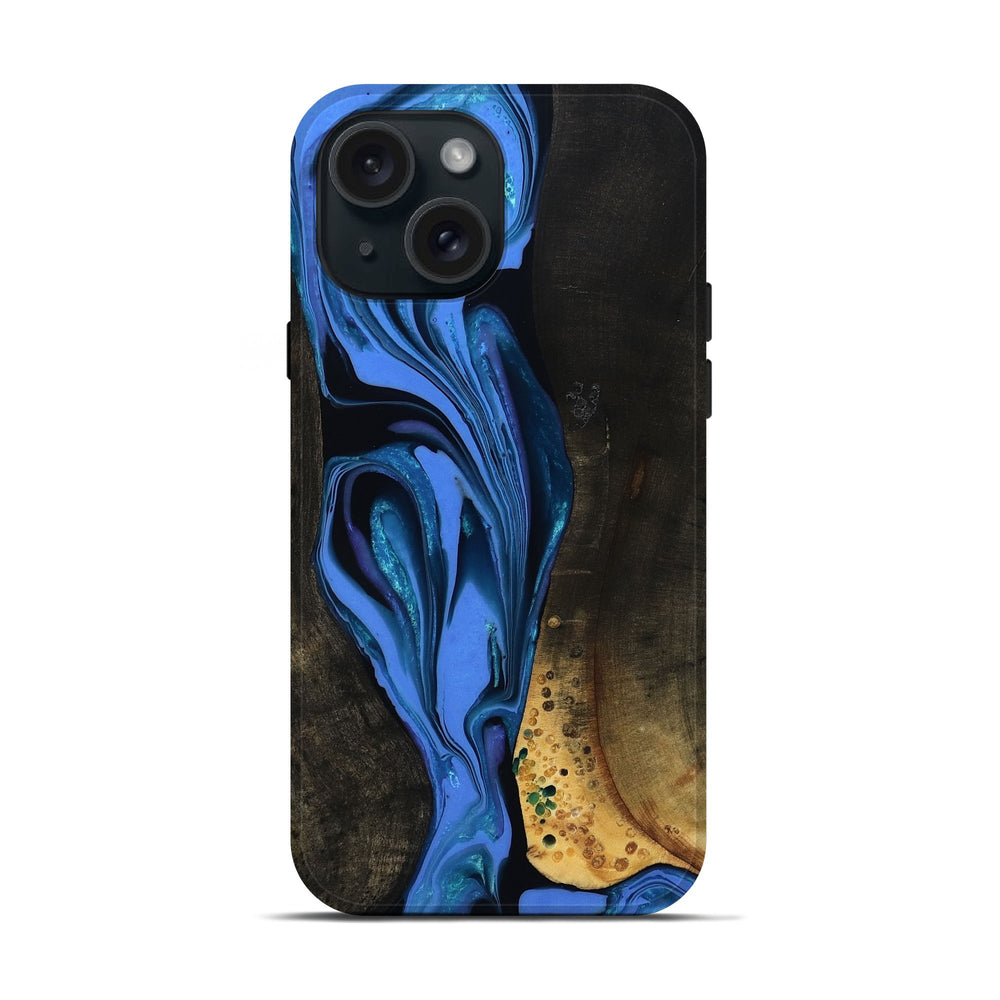 Our Live Edge cases are made from an amazing combination of stabilized wood burl and colored resin. Our stabilization process hardens the wood to protect against cracks and breaks. We do every step of the process at our shop in Northern Indiana. Perfectly fits the iPhone 15.