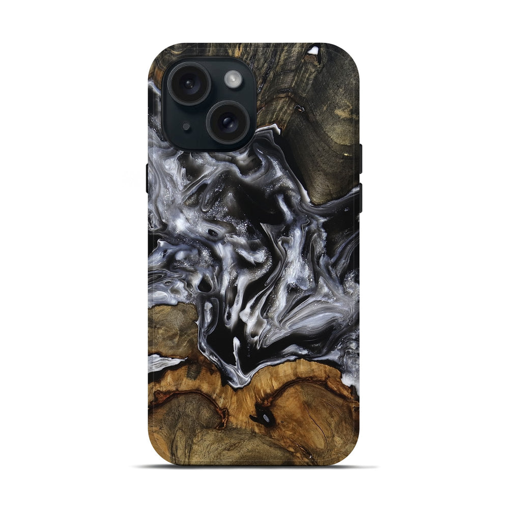Our Live Edge cases are made from an amazing combination of stabilized wood burl and colored resin. Our stabilization process hardens the wood to protect against cracks and breaks. We do every step of the process at our shop in Northern Indiana. Perfectly fits the iPhone 15.