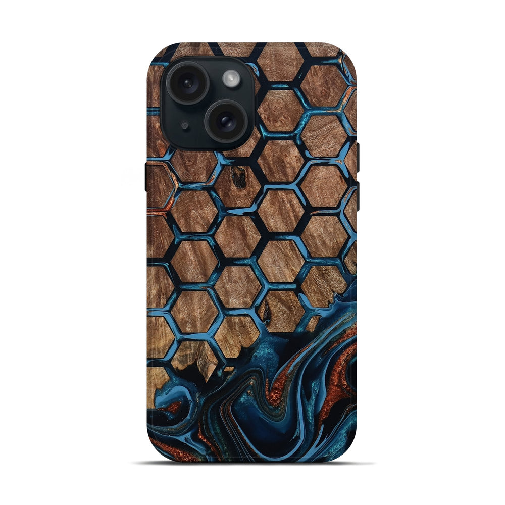 Our Live Edge cases are made from an amazing combination of stabilized wood burl and colored resin. Our stabilization process hardens the wood to protect against cracks and breaks. We do every step of the process at our shop in Northern Indiana. Perfectly fits the iPhone 15.