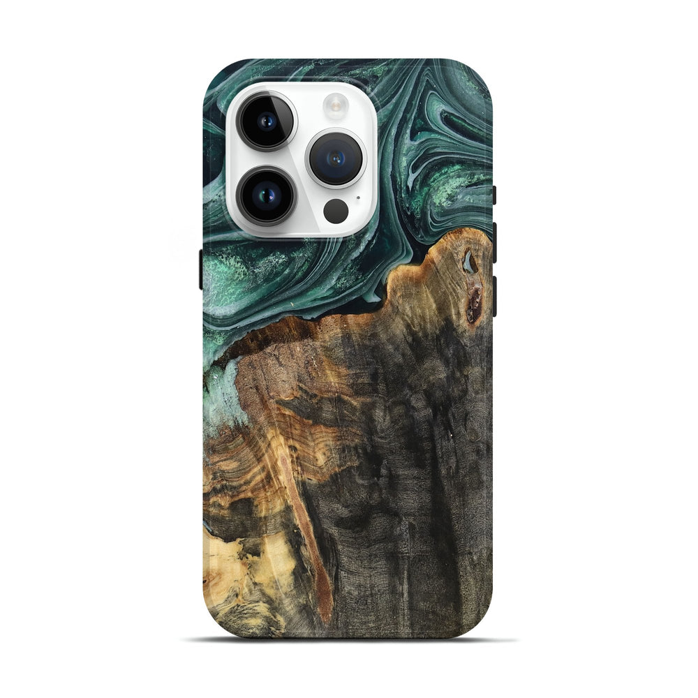 Our Live Edge cases are made from an amazing combination of stabilized wood burl and colored resin. Our stabilization process hardens the wood to protect against cracks and breaks. We do every step of the process at our shop in Northern Indiana. Perfectly fits the iPhone 15 Pro.