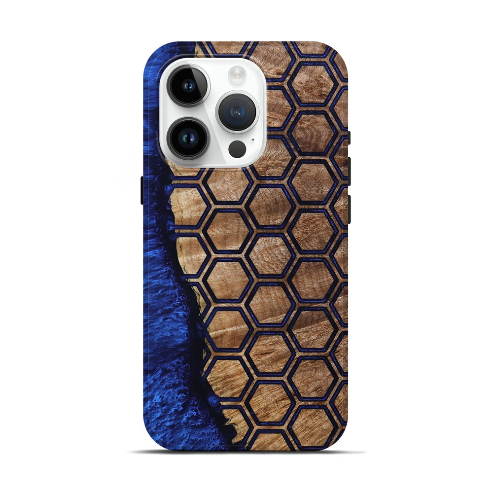 Our Live Edge cases are made from an amazing combination of stabilized wood burl and colored resin. Our stabilization process hardens the wood to protect against cracks and breaks. We do every step of the process at our shop in Northern Indiana. Perfectly fits the iPhone 15 Pro.