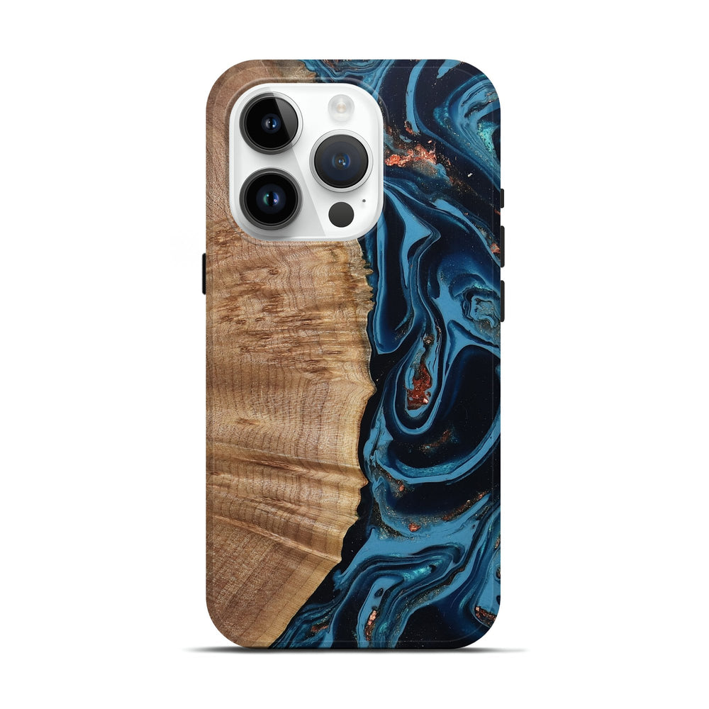 Our Live Edge cases are made from an amazing combination of stabilized wood burl and colored resin. Our stabilization process hardens the wood to protect against cracks and breaks. We do every step of the process at our shop in Northern Indiana. Perfectly fits the iPhone 15 Pro.