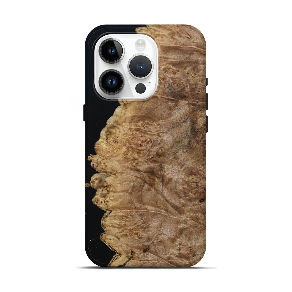 Our Live Edge cases are made from an amazing combination of stabilized wood burl and colored resin. Our stabilization process hardens the wood to protect against cracks and breaks. We do every step of the process at our shop in Northern Indiana. Perfectly fits the iPhone 15 Pro.
