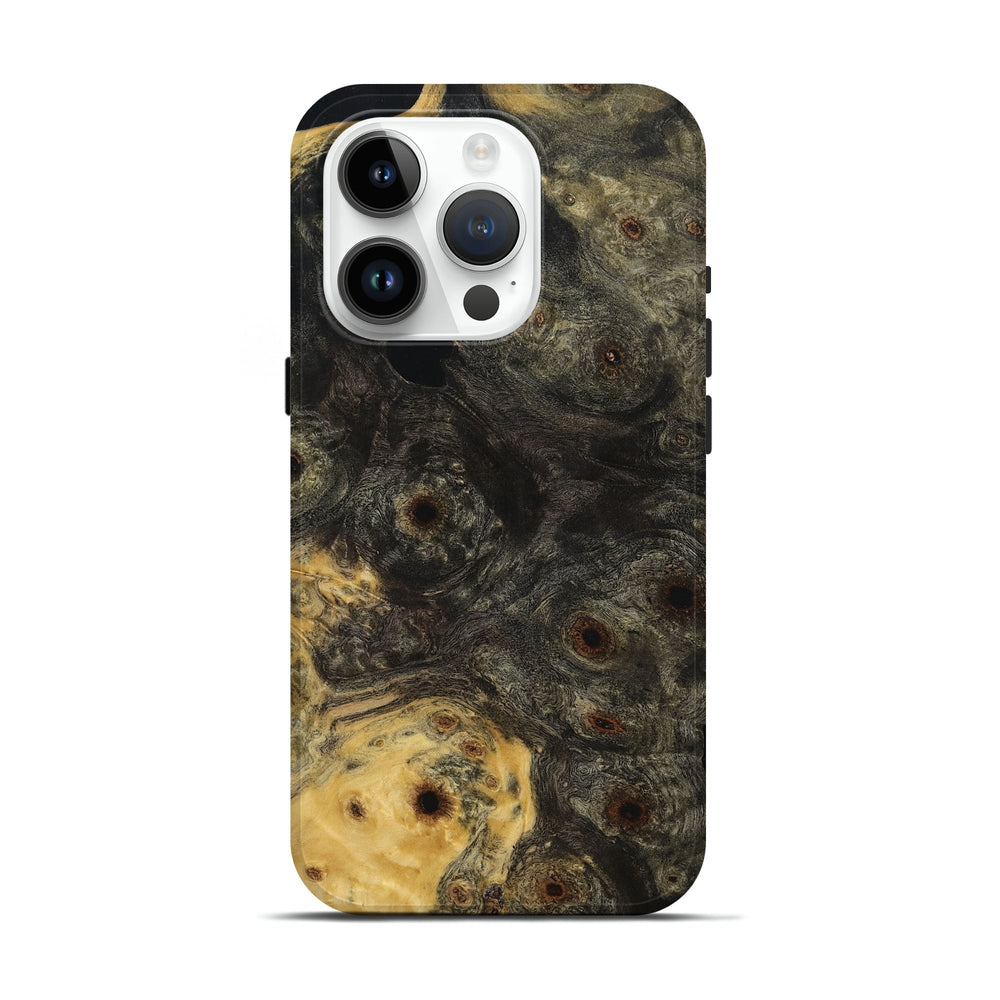 Our Live Edge cases are made from an amazing combination of stabilized wood burl and colored resin. Our stabilization process hardens the wood to protect against cracks and breaks. We do every step of the process at our shop in Northern Indiana. Perfectly fits the iPhone 15 Pro.