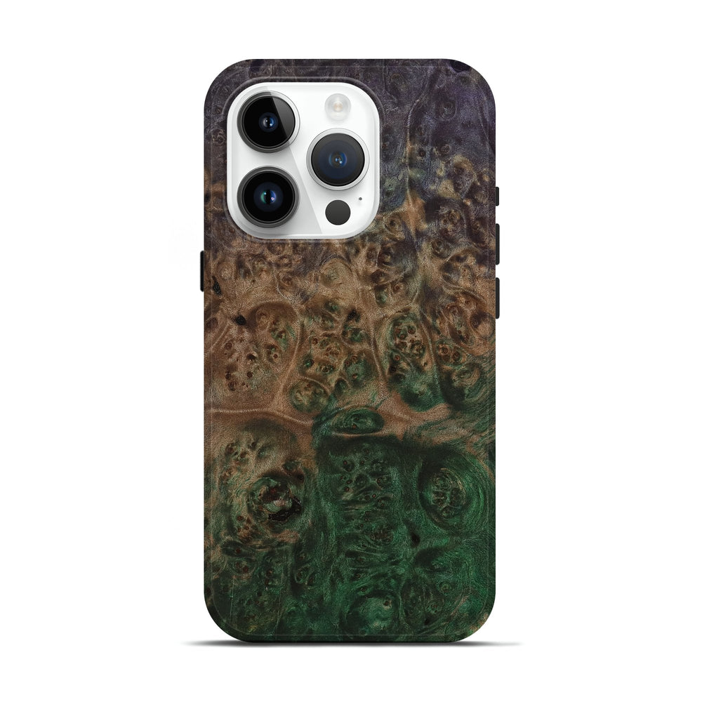 Our Live Edge cases are made from an amazing combination of stabilized wood burl and colored resin. Our stabilization process hardens the wood to protect against cracks and breaks. We do every step of the process at our shop in Northern Indiana. Perfectly fits the iPhone 15 Pro.