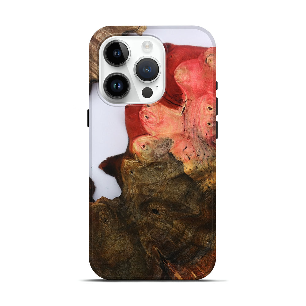 Our Live Edge cases are made from an amazing combination of stabilized wood burl and colored resin. Our stabilization process hardens the wood to protect against cracks and breaks. We do every step of the process at our shop in Northern Indiana. Perfectly fits the iPhone 15 Pro.