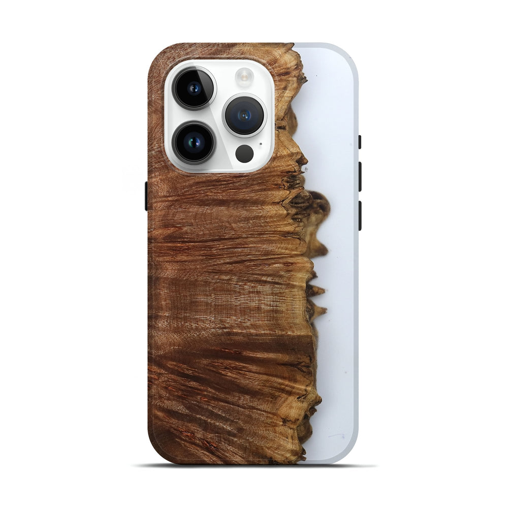 Our Live Edge cases are made from an amazing combination of stabilized wood burl and colored resin. Our stabilization process hardens the wood to protect against cracks and breaks. We do every step of the process at our shop in Northern Indiana. Perfectly fits the iPhone 15 Pro.