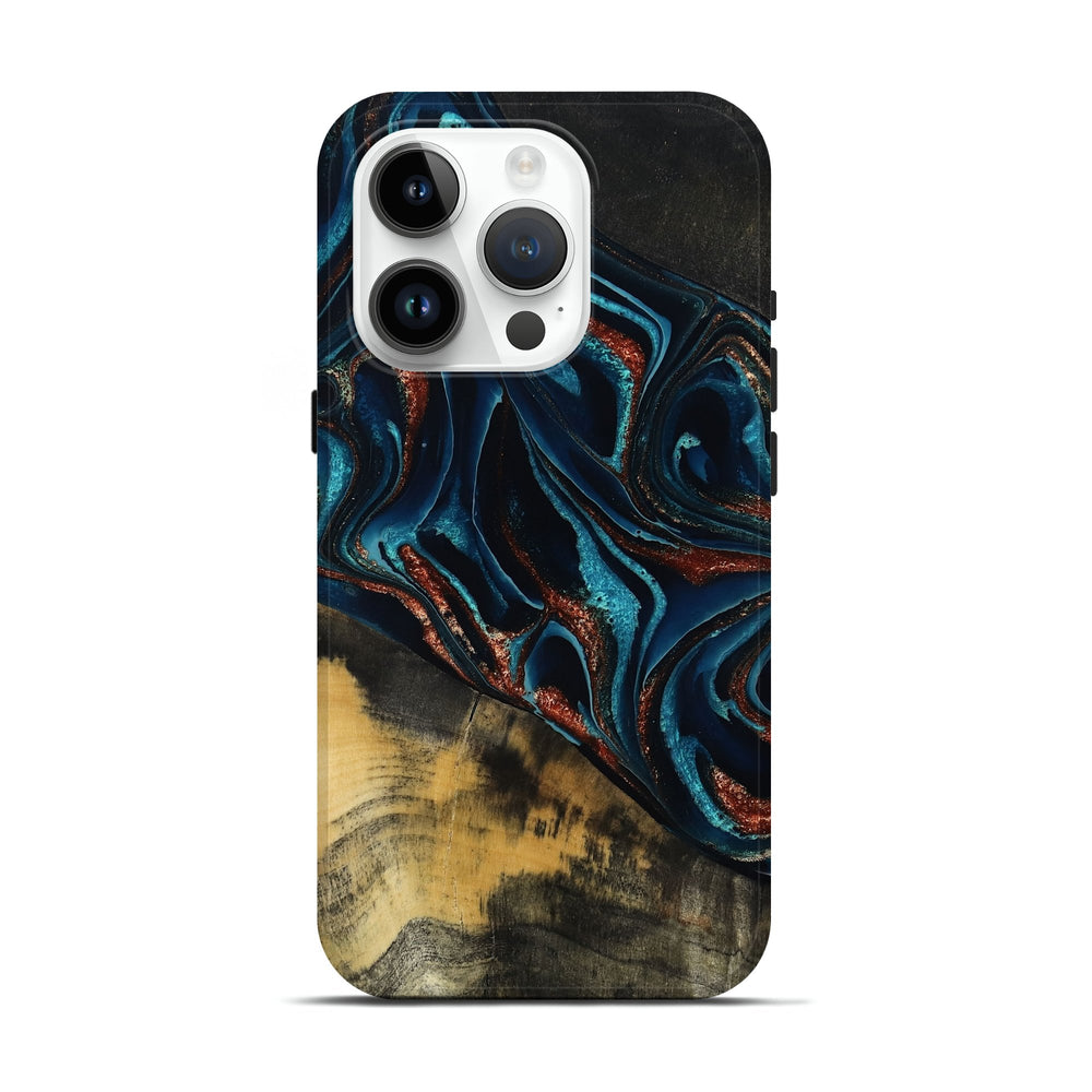 Our Live Edge cases are made from an amazing combination of stabilized wood burl and colored resin. Our stabilization process hardens the wood to protect against cracks and breaks. We do every step of the process at our shop in Northern Indiana. Perfectly fits the iPhone 15 Pro.