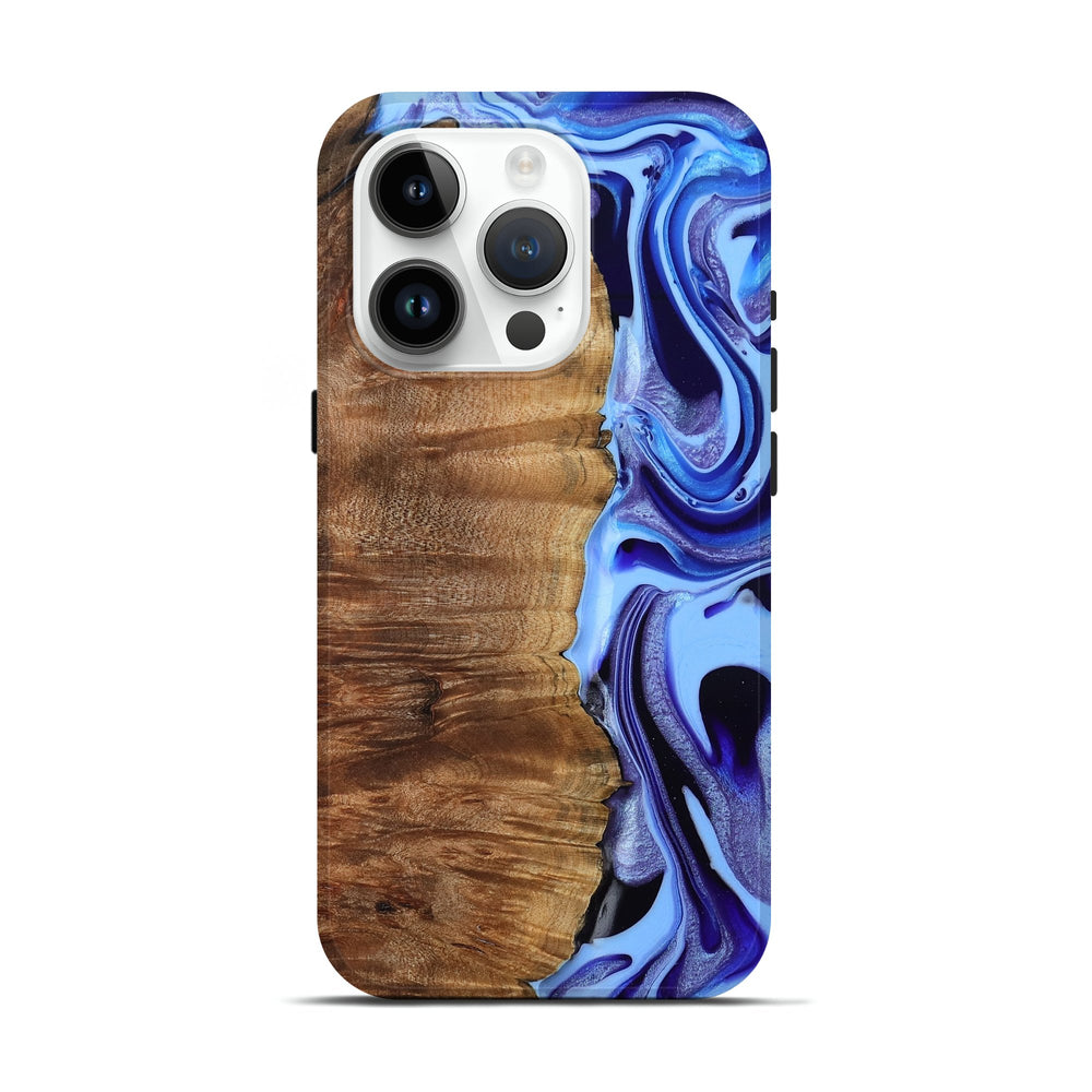 Our Live Edge cases are made from an amazing combination of stabilized wood burl and colored resin. Our stabilization process hardens the wood to protect against cracks and breaks. We do every step of the process at our shop in Northern Indiana. Perfectly fits the iPhone 15 Pro.