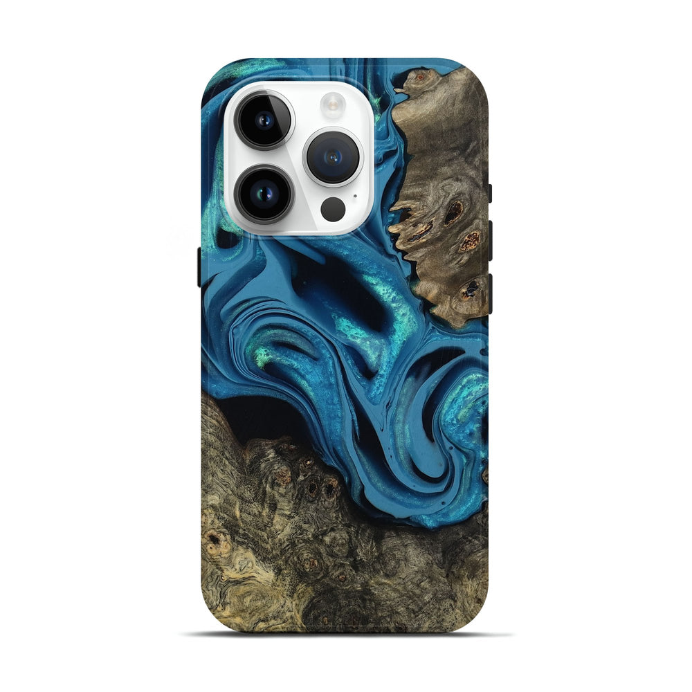 Our Live Edge cases are made from an amazing combination of stabilized wood burl and colored resin. Our stabilization process hardens the wood to protect against cracks and breaks. We do every step of the process at our shop in Northern Indiana. Perfectly fits the iPhone 15 Pro.