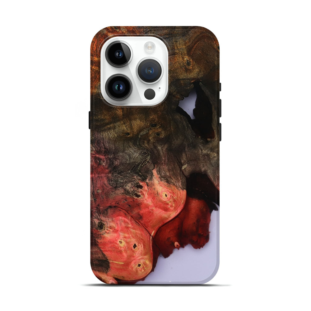 Our Live Edge cases are made from an amazing combination of stabilized wood burl and colored resin. Our stabilization process hardens the wood to protect against cracks and breaks. We do every step of the process at our shop in Northern Indiana. Perfectly fits the iPhone 15 Pro.