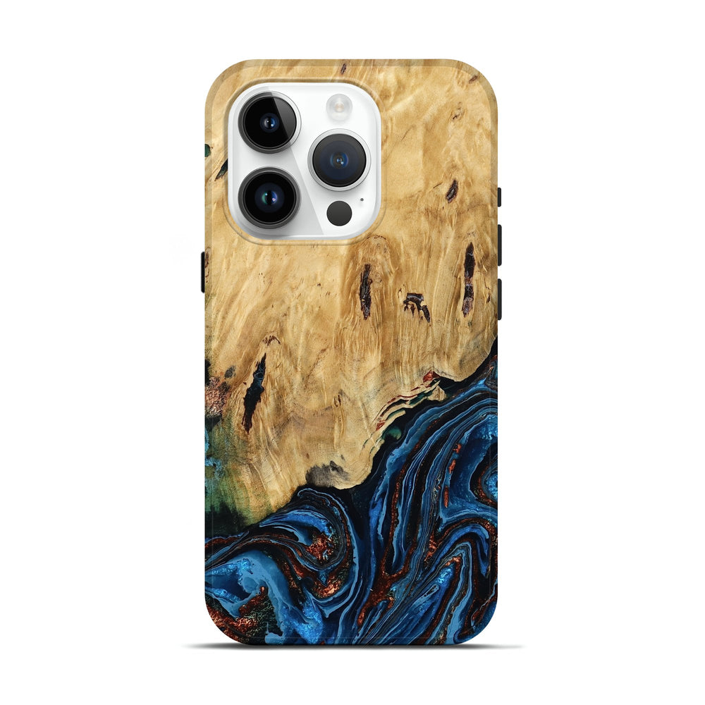 Our Live Edge cases are made from an amazing combination of stabilized wood burl and colored resin. Our stabilization process hardens the wood to protect against cracks and breaks. We do every step of the process at our shop in Northern Indiana. Perfectly fits the iPhone 15 Pro.