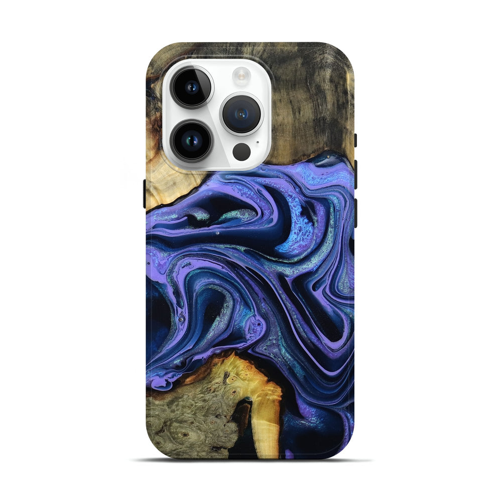 Our Live Edge cases are made from an amazing combination of stabilized wood burl and colored resin. Our stabilization process hardens the wood to protect against cracks and breaks. We do every step of the process at our shop in Northern Indiana. Perfectly fits the iPhone 15 Pro.