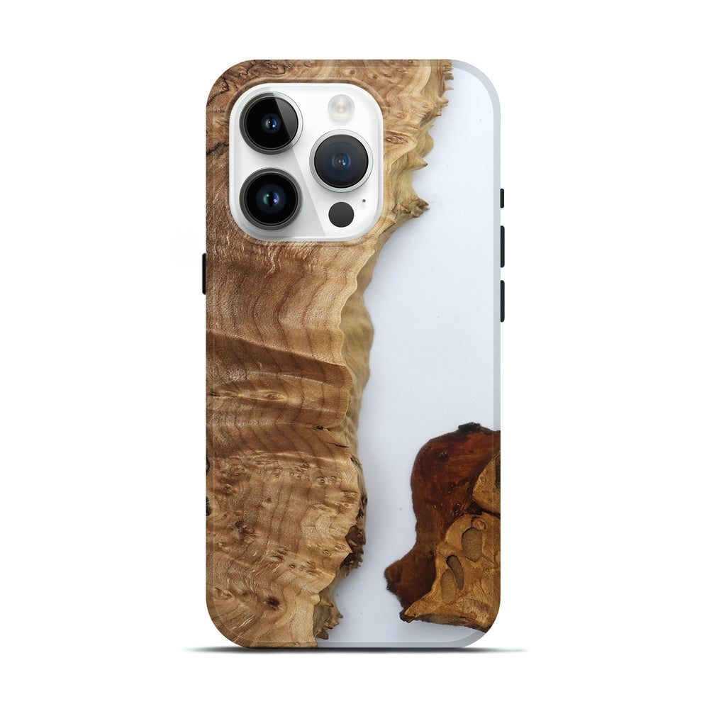 Our Live Edge cases are made from an amazing combination of stabilized wood burl and colored resin. Our stabilization process hardens the wood to protect against cracks and breaks. We do every step of the process at our shop in Northern Indiana. Perfectly fits the iPhone 15 Pro.