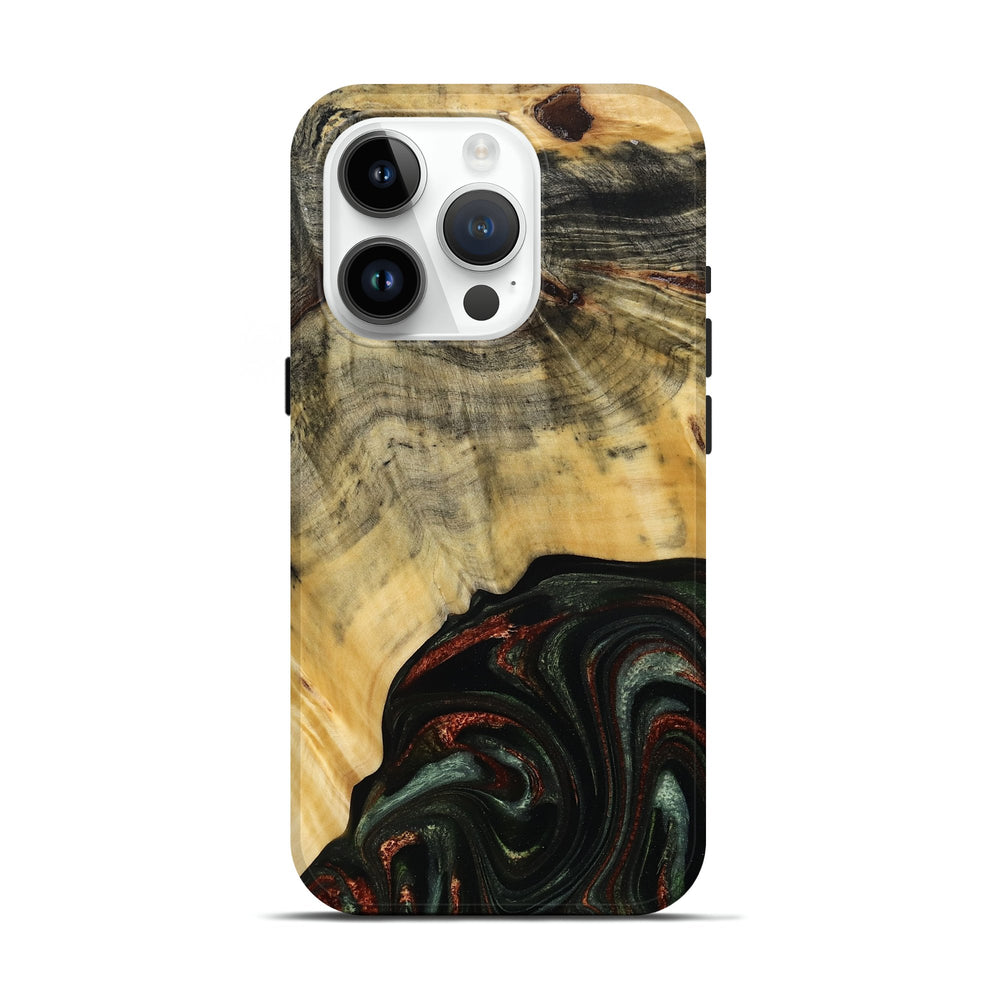 Our Live Edge cases are made from an amazing combination of stabilized wood burl and colored resin. Our stabilization process hardens the wood to protect against cracks and breaks. We do every step of the process at our shop in Northern Indiana. Perfectly fits the iPhone 15 Pro.