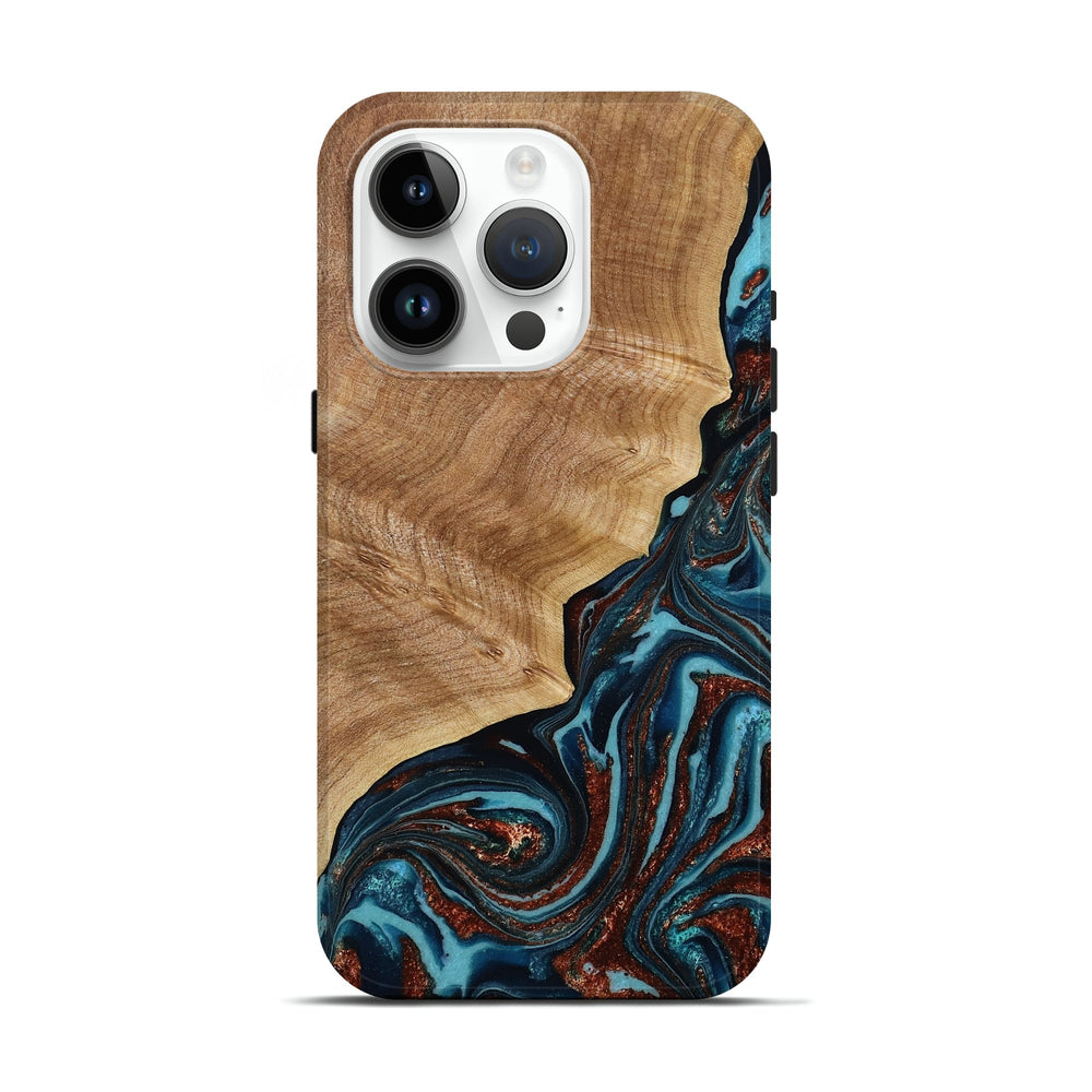 Our Live Edge cases are made from an amazing combination of stabilized wood burl and colored resin. Our stabilization process hardens the wood to protect against cracks and breaks. We do every step of the process at our shop in Northern Indiana. Perfectly fits the iPhone 15 Pro.