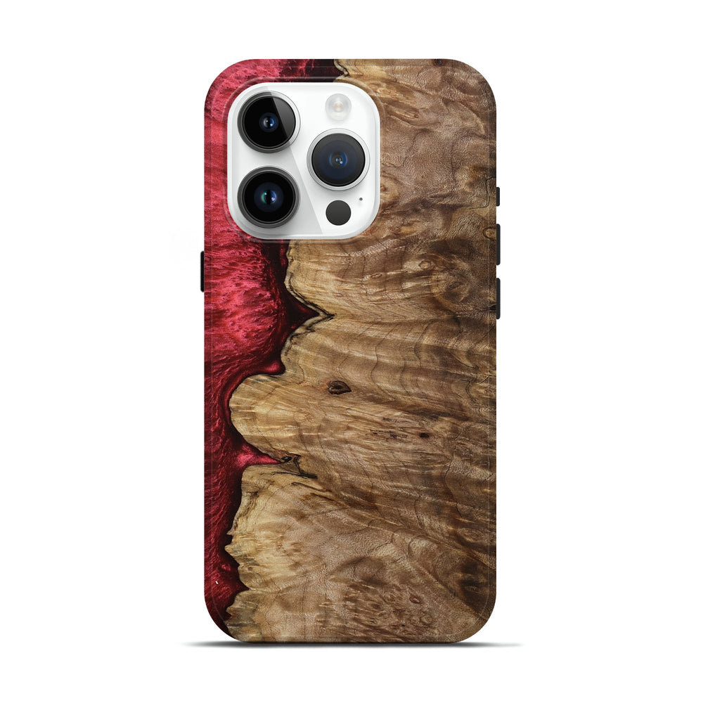 Our Live Edge cases are made from an amazing combination of stabilized wood burl and colored resin. Our stabilization process hardens the wood to protect against cracks and breaks. We do every step of the process at our shop in Northern Indiana. Perfectly fits the iPhone 15 Pro.