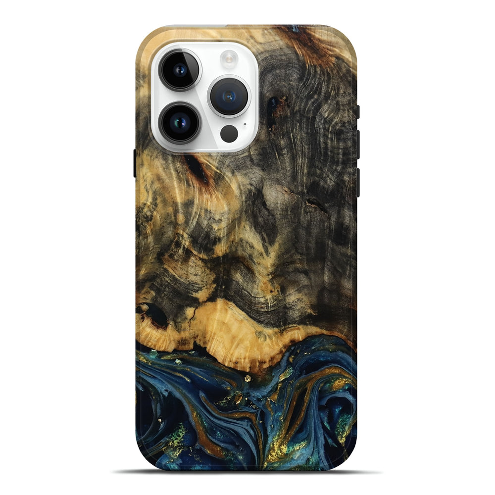 Our Live Edge cases are made from an amazing combination of stabilized wood burl and colored resin. Our stabilization process hardens the wood to protect against cracks and breaks. We do every step of the process at our shop in Northern Indiana. Perfectly fits the iPhone 15 Pro Max.
