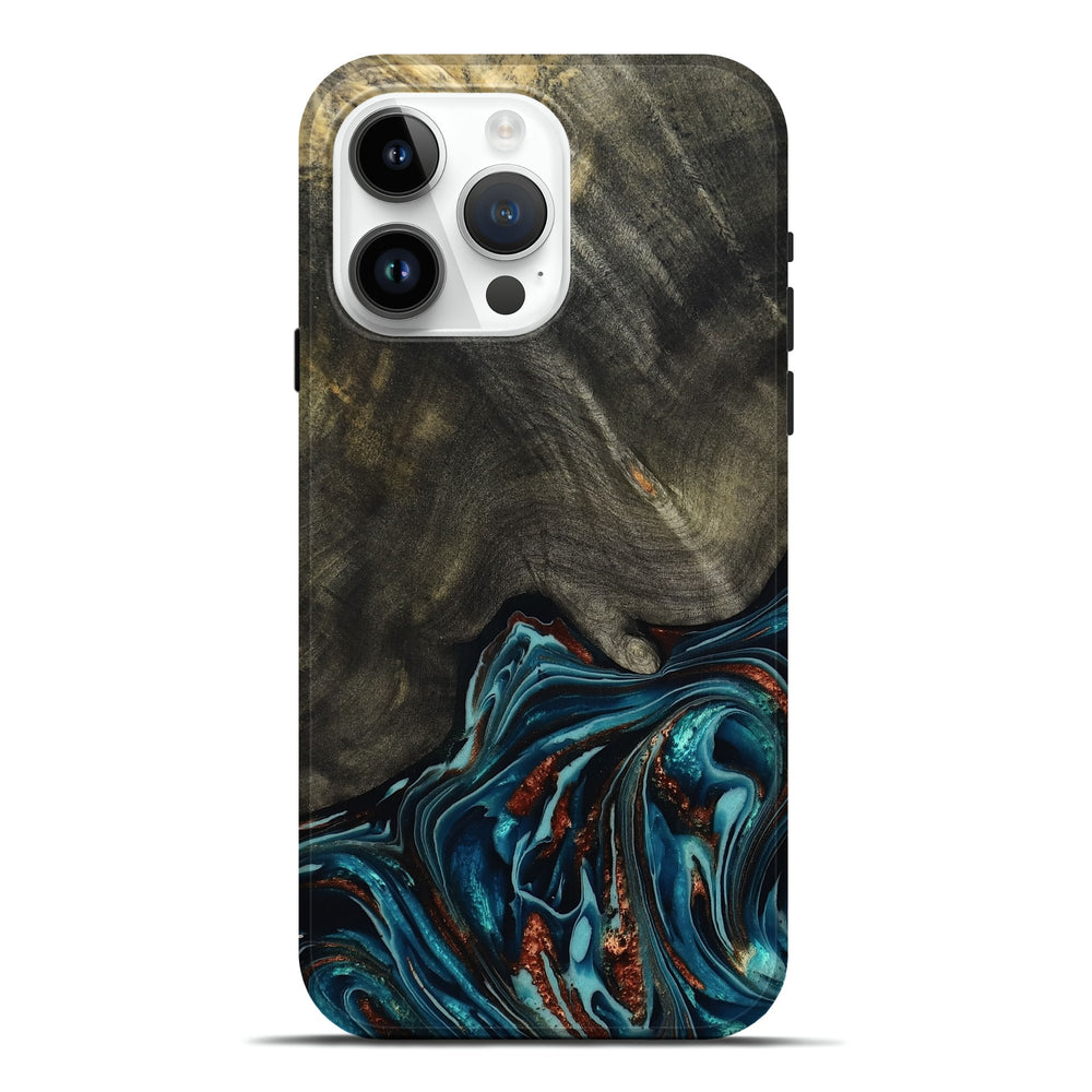 Our Live Edge cases are made from an amazing combination of stabilized wood burl and colored resin. Our stabilization process hardens the wood to protect against cracks and breaks. We do every step of the process at our shop in Northern Indiana. Perfectly fits the iPhone 15 Pro Max.