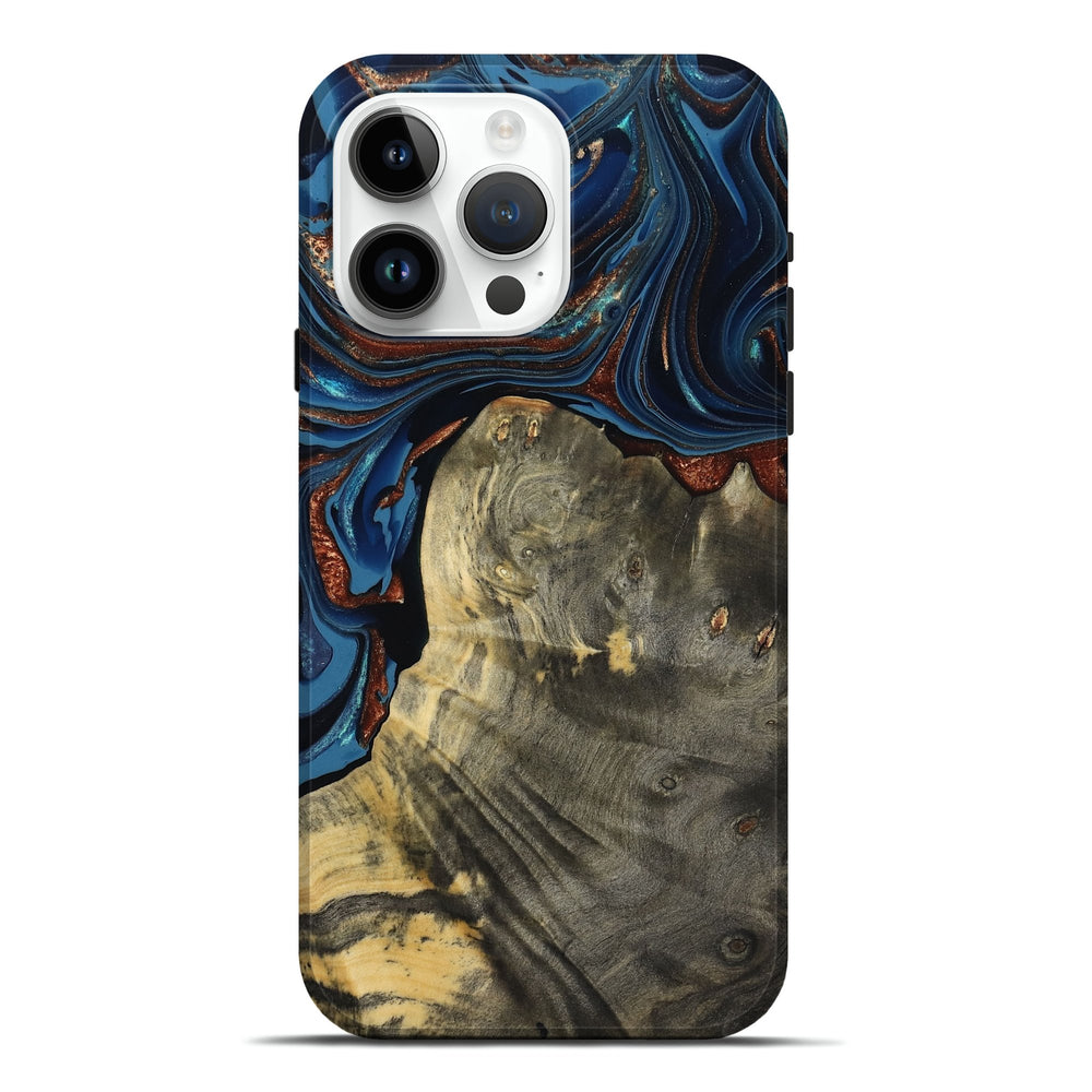 Our Live Edge cases are made from an amazing combination of stabilized wood burl and colored resin. Our stabilization process hardens the wood to protect against cracks and breaks. We do every step of the process at our shop in Northern Indiana. Perfectly fits the iPhone 15 Pro Max.