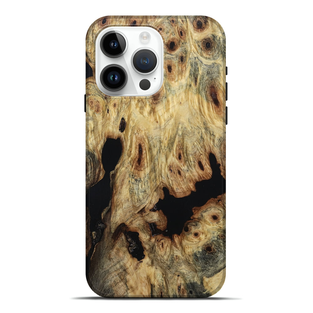 Our Live Edge cases are made from an amazing combination of stabilized wood burl and colored resin. Our stabilization process hardens the wood to protect against cracks and breaks. We do every step of the process at our shop in Northern Indiana. Perfectly fits the iPhone 15 Pro Max.