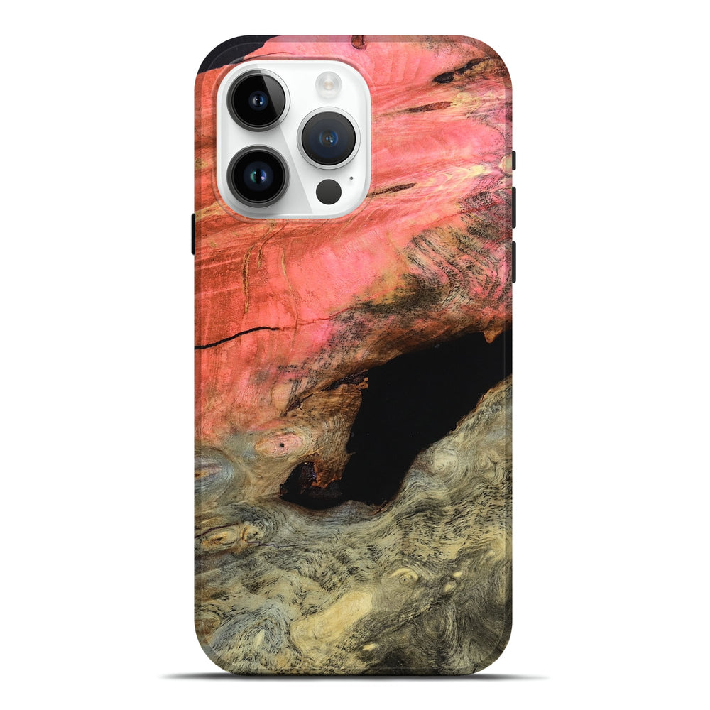 Our Live Edge cases are made from an amazing combination of stabilized wood burl and colored resin. Our stabilization process hardens the wood to protect against cracks and breaks. We do every step of the process at our shop in Northern Indiana. Perfectly fits the iPhone 15 Pro Max.