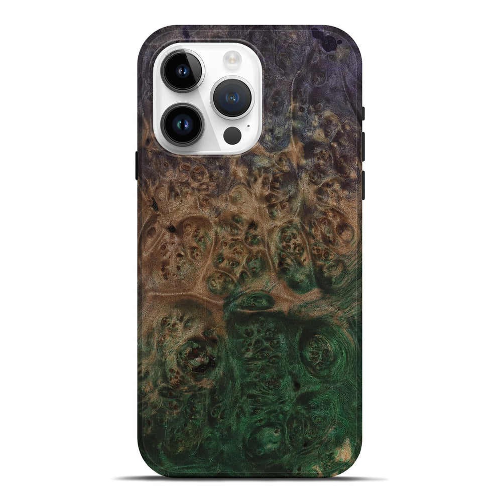 Our Live Edge cases are made from an amazing combination of stabilized wood burl and colored resin. Our stabilization process hardens the wood to protect against cracks and breaks. We do every step of the process at our shop in Northern Indiana. Perfectly fits the iPhone 15 Pro Max.