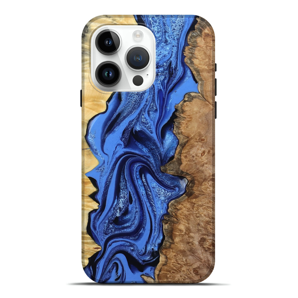 Our Live Edge cases are made from an amazing combination of stabilized wood burl and colored resin. Our stabilization process hardens the wood to protect against cracks and breaks. We do every step of the process at our shop in Northern Indiana. Perfectly fits the iPhone 15 Pro Max.