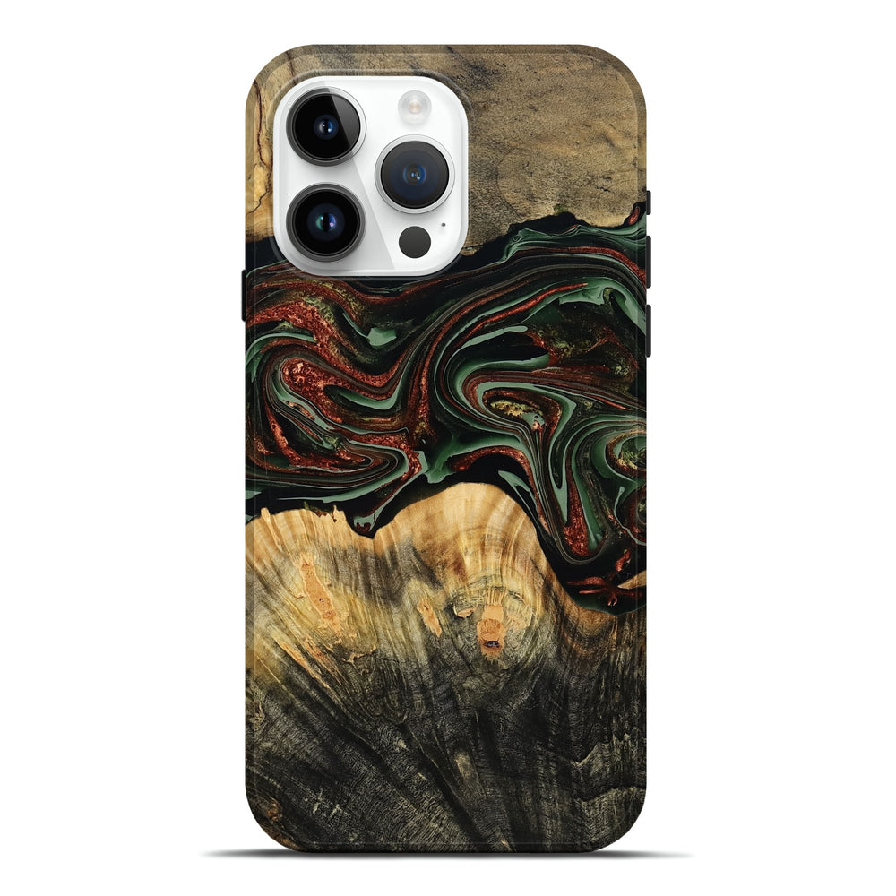 Our Live Edge cases are made from an amazing combination of stabilized wood burl and colored resin. Our stabilization process hardens the wood to protect against cracks and breaks. We do every step of the process at our shop in Northern Indiana. Perfectly fits the iPhone 15 Pro Max.