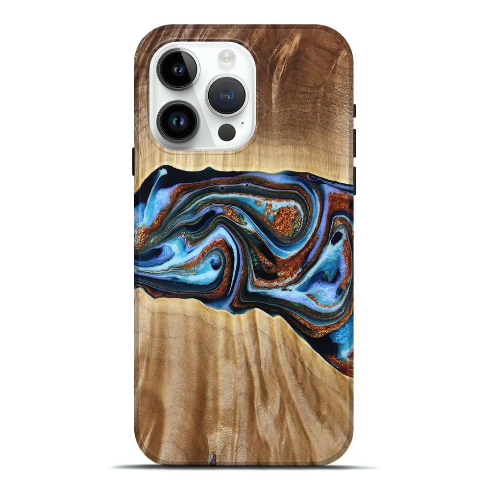 Our Live Edge cases are made from an amazing combination of stabilized wood burl and colored resin. Our stabilization process hardens the wood to protect against cracks and breaks. We do every step of the process at our shop in Northern Indiana. Perfectly fits the iPhone 15 Pro Max.