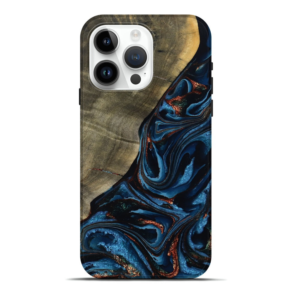 Our Live Edge cases are made from an amazing combination of stabilized wood burl and colored resin. Our stabilization process hardens the wood to protect against cracks and breaks. We do every step of the process at our shop in Northern Indiana. Perfectly fits the iPhone 15 Pro Max.