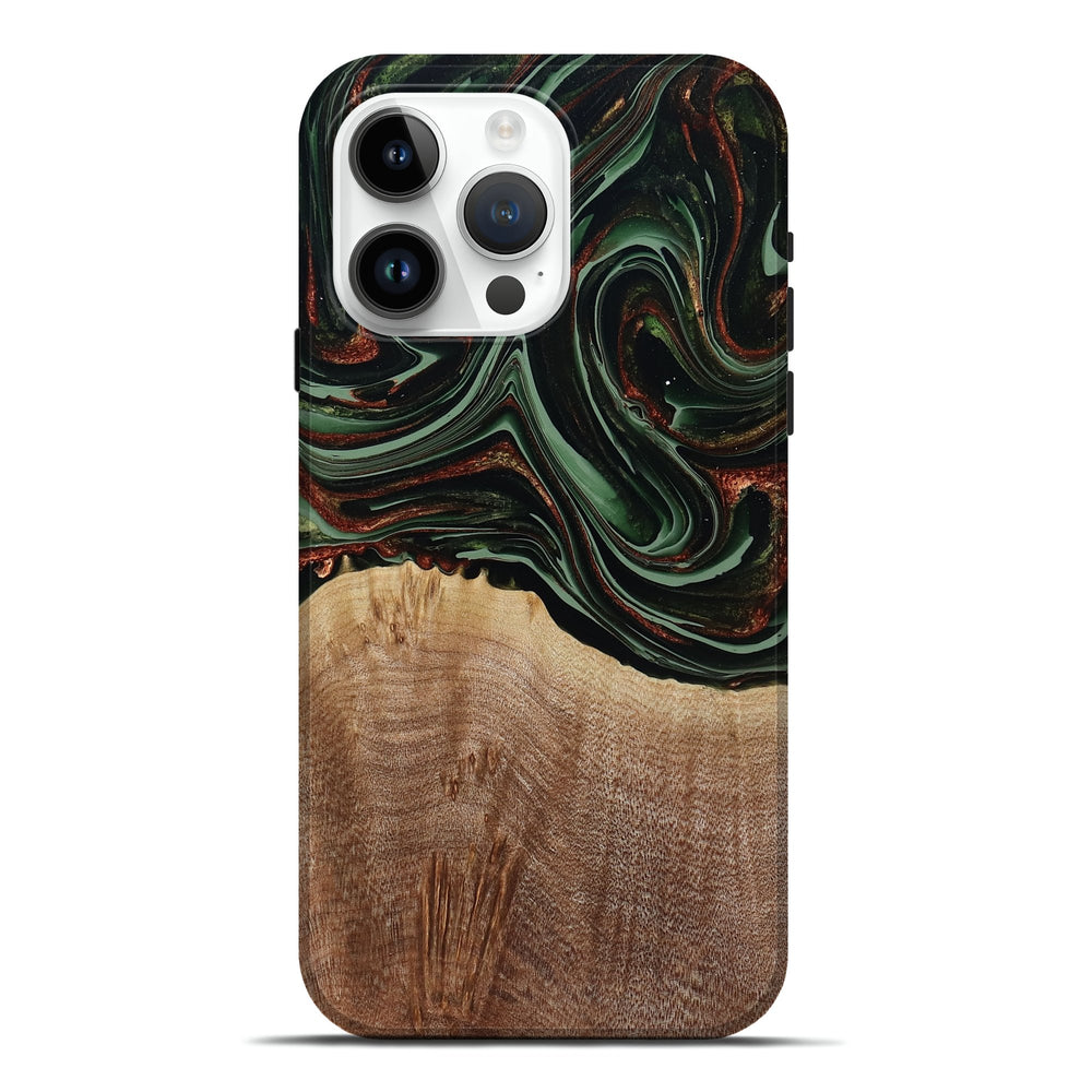 Our Live Edge cases are made from an amazing combination of stabilized wood burl and colored resin. Our stabilization process hardens the wood to protect against cracks and breaks. We do every step of the process at our shop in Northern Indiana. Perfectly fits the iPhone 15 Pro Max.