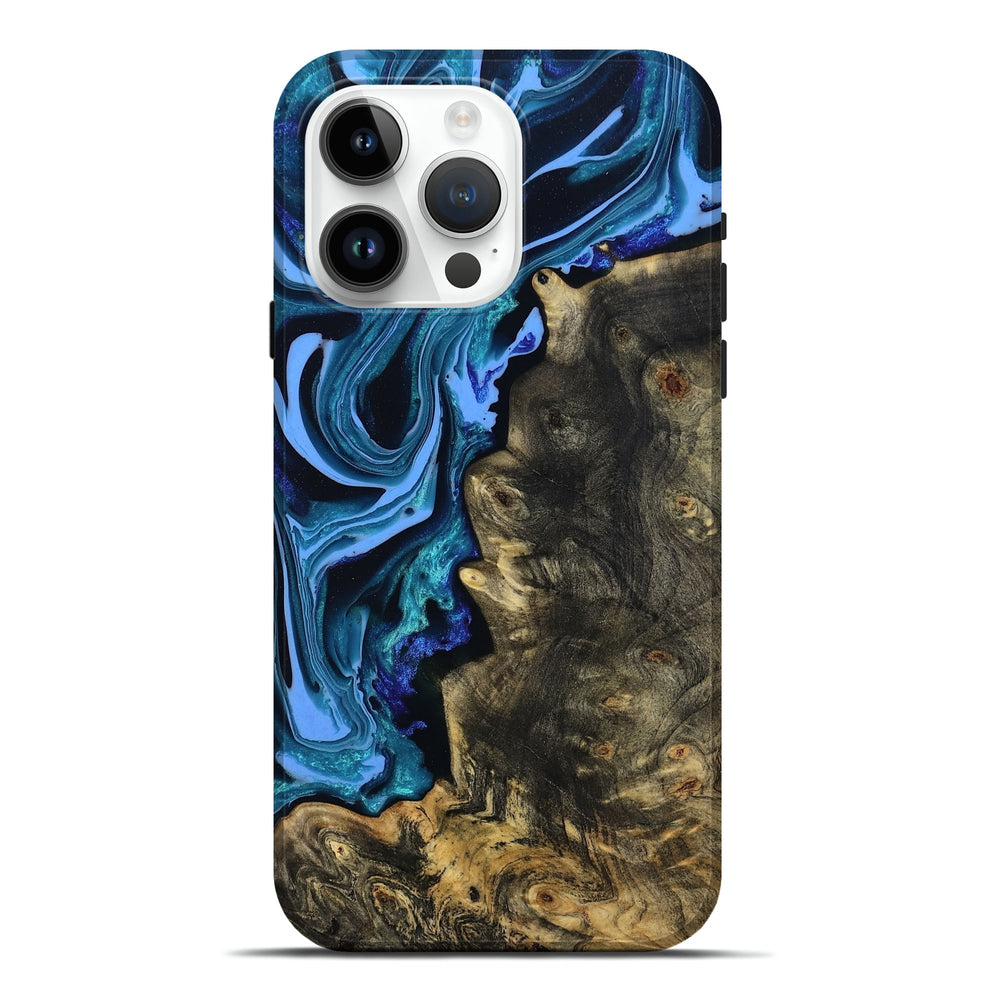 Our Live Edge cases are made from an amazing combination of stabilized wood burl and colored resin. Our stabilization process hardens the wood to protect against cracks and breaks. We do every step of the process at our shop in Northern Indiana. Perfectly fits the iPhone 15 Pro Max.