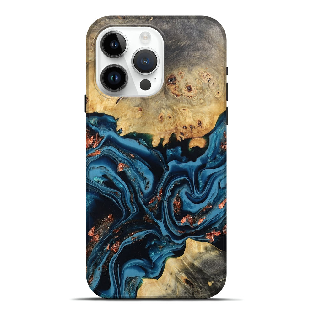 Our Live Edge cases are made from an amazing combination of stabilized wood burl and colored resin. Our stabilization process hardens the wood to protect against cracks and breaks. We do every step of the process at our shop in Northern Indiana. Perfectly fits the iPhone 15 Pro Max.