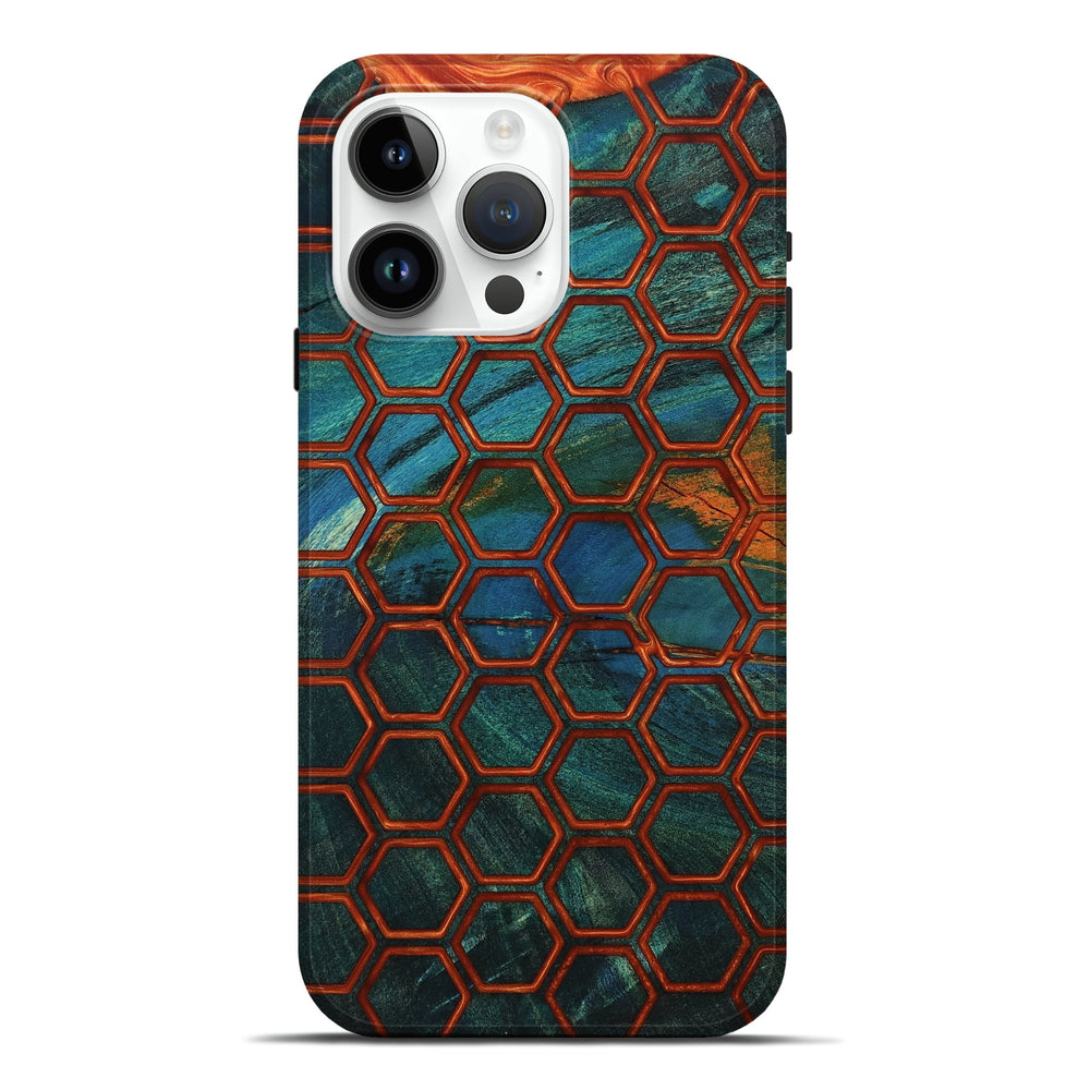 Our Live Edge cases are made from an amazing combination of stabilized wood burl and colored resin. Our stabilization process hardens the wood to protect against cracks and breaks. We do every step of the process at our shop in Northern Indiana. Perfectly fits the iPhone 15 Pro Max.