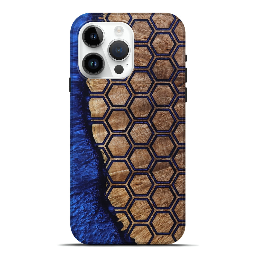 Our Live Edge cases are made from an amazing combination of stabilized wood burl and colored resin. Our stabilization process hardens the wood to protect against cracks and breaks. We do every step of the process at our shop in Northern Indiana. Perfectly fits the iPhone 15 Pro Max.