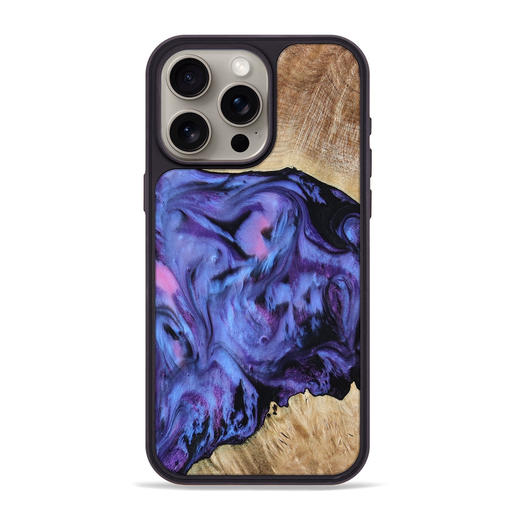 Jill has a beautiful mix of rich maple wood with gentle, swirling patterns. The bold purple and blue colors create a striking contrast against the warm wood tones.