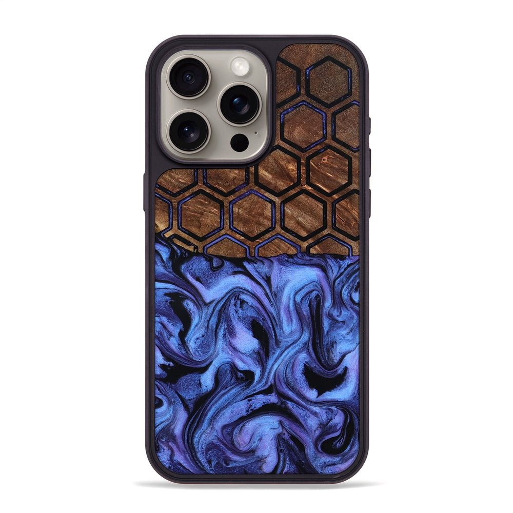 Alvaro has a rich, warm Maple wood surface with a beautiful honeycomb pattern on top. Below, it features swirling shades of blue and purple, creating an eye-catching contrast.