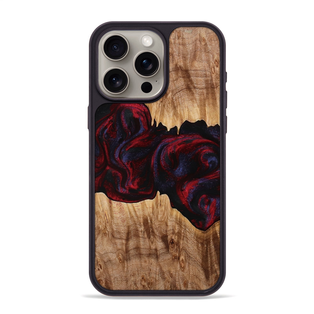 Jakayla has an intriguing mix of deep red and black swirls against a backdrop of warm maple wood. The beautiful pattern adds a unique touch, showcasing the natural grain of the wood.