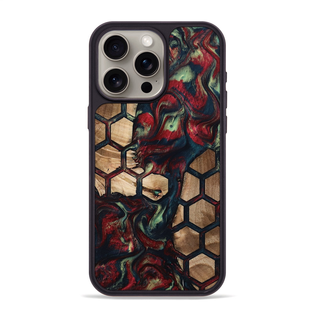 Quiana has a striking mix of deep reds and greens swirling around natural wood patterns. Its design features a playful hexagonal pattern, adding a unique touch to the overall look.