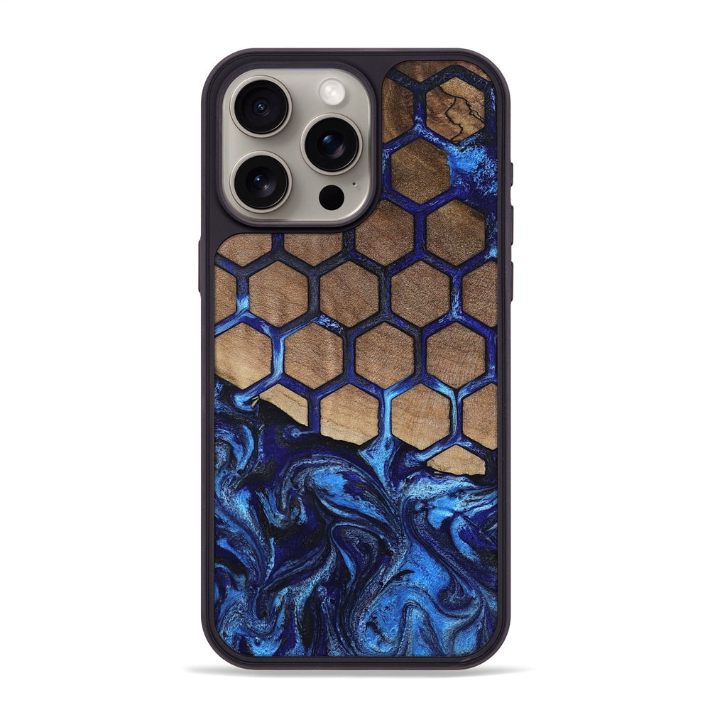 Saanvi has beautiful maple wood with a warm, natural tone. It features a striking honeycomb pattern that contrasts with bold swirls of blue.