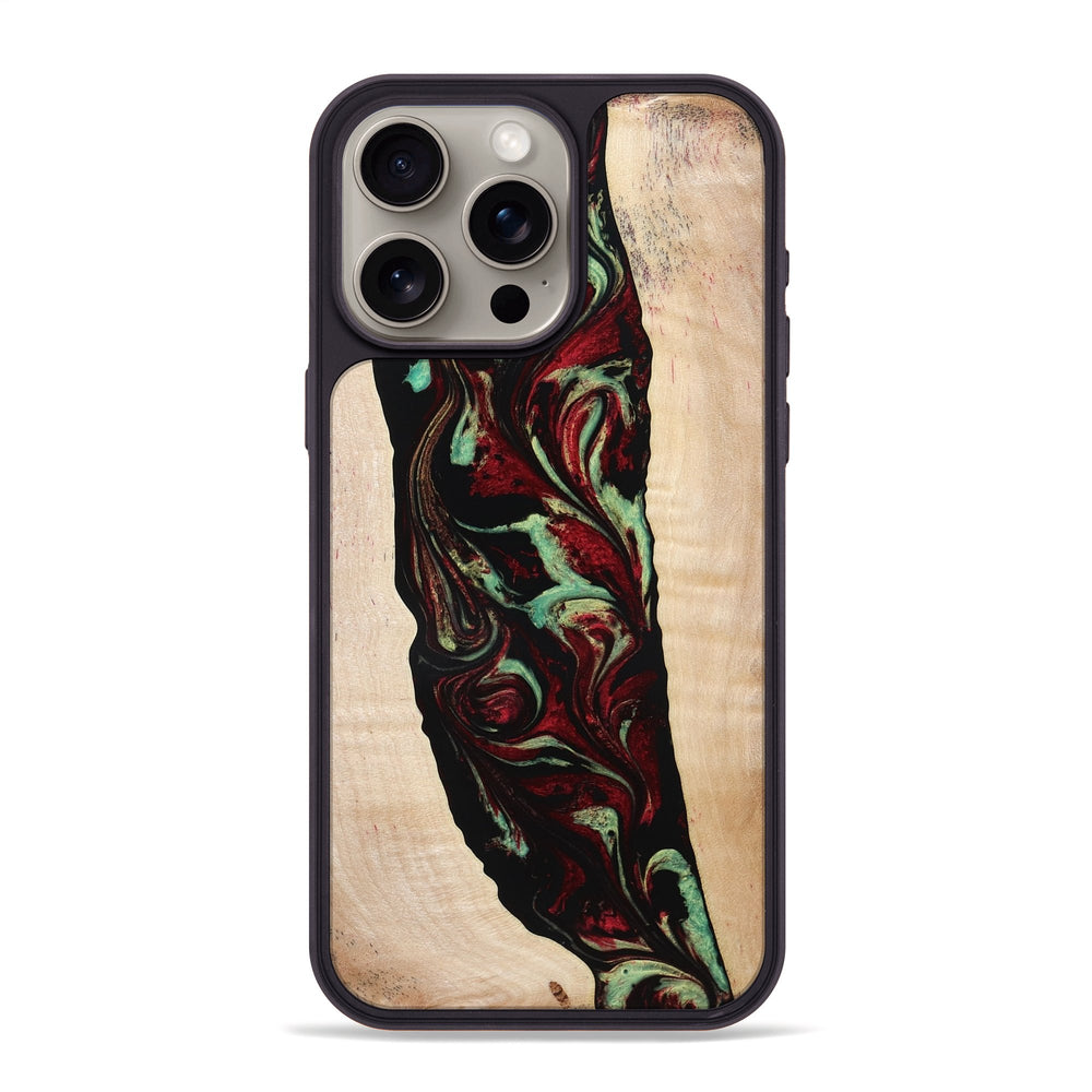 Sariah features smooth Maple wood with swirling patterns in deep red and soft green. The graceful lines create a beautiful contrast against the light wood background.