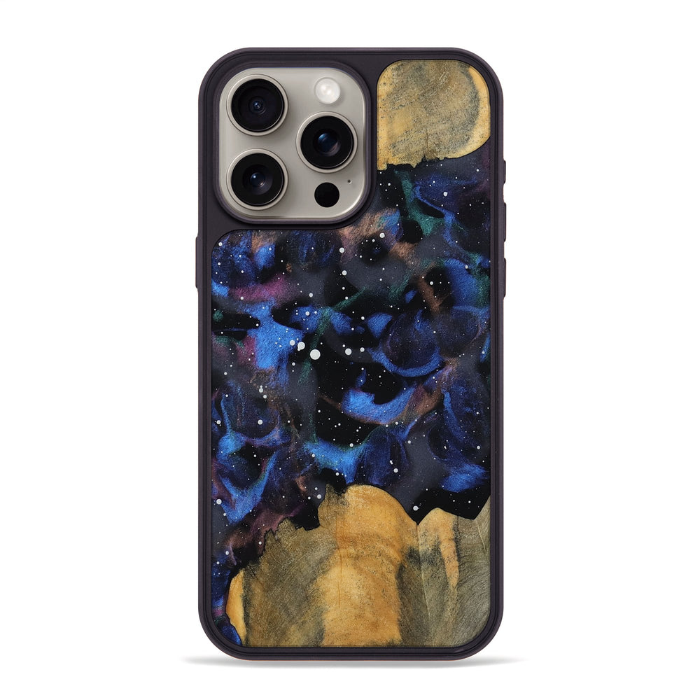 Talan has a beautiful mix of dark blues, purples, and blacks, creating a cosmic feel. Its natural wood edges contrast nicely with the vibrant colors, adding warmth to the overall design.