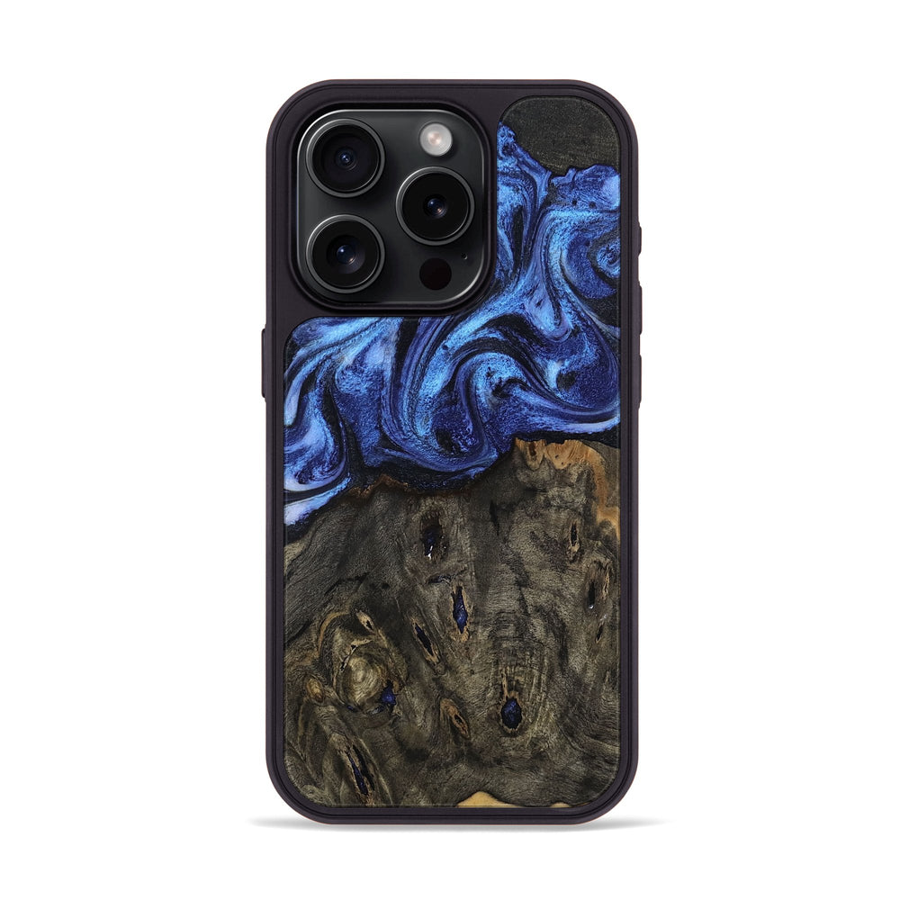 Jess has a beautiful mix of swirling blue patterns that stand out against a rich, natural wood grain. The dark tones and lighter spots create a lovely contrast, making each section unique.