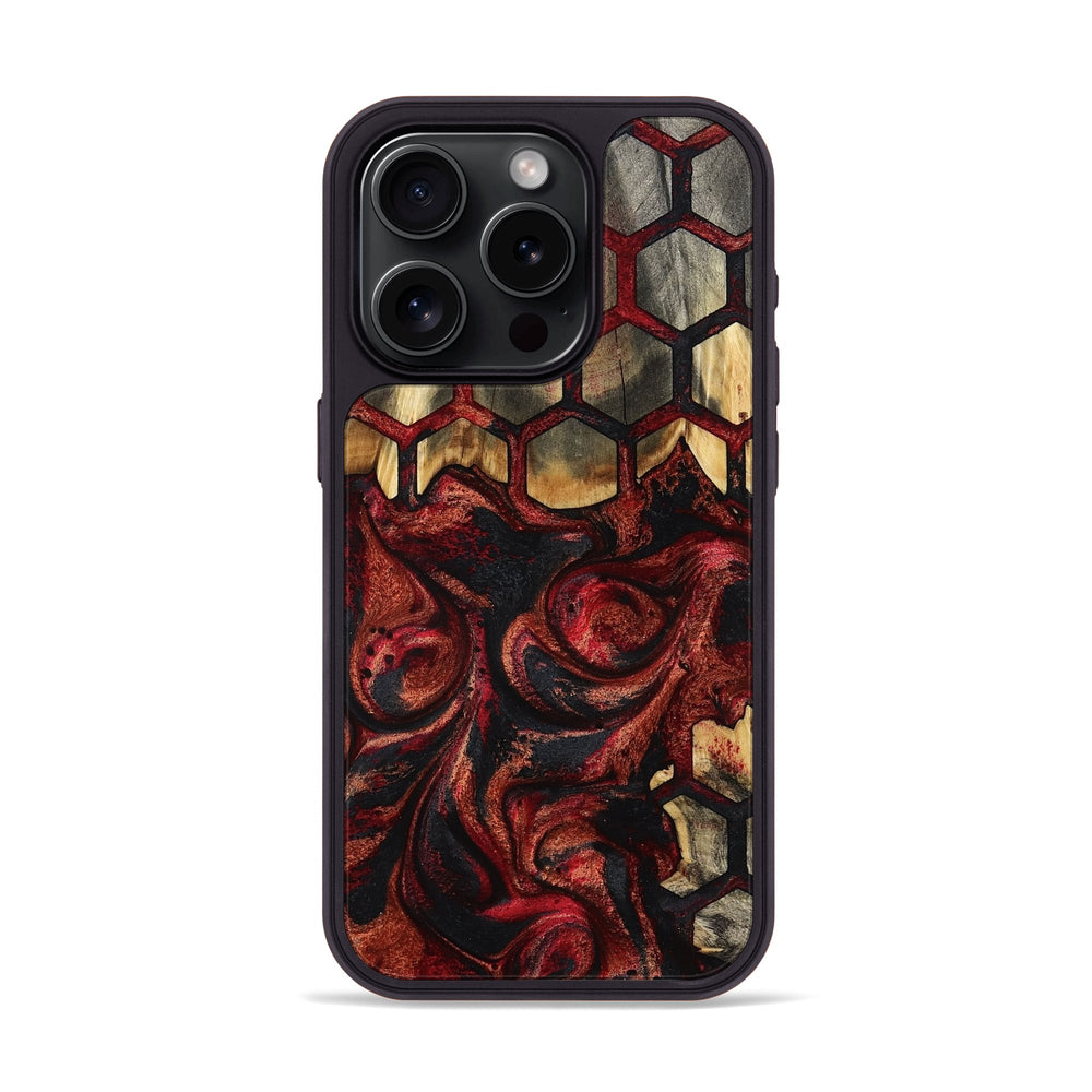 Domenic has a striking honeycomb pattern that blends rich reds and deep blacks. The wood showcases smooth swirls that add a sense of movement and warmth.