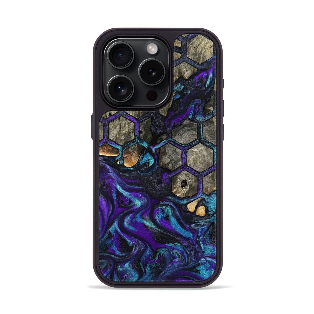 Ieshia has beautiful Buckeye wood with dark and light tones. Intertwined with vibrant swirls of purple and blue, it features a hexagonal pattern that adds depth and interest.