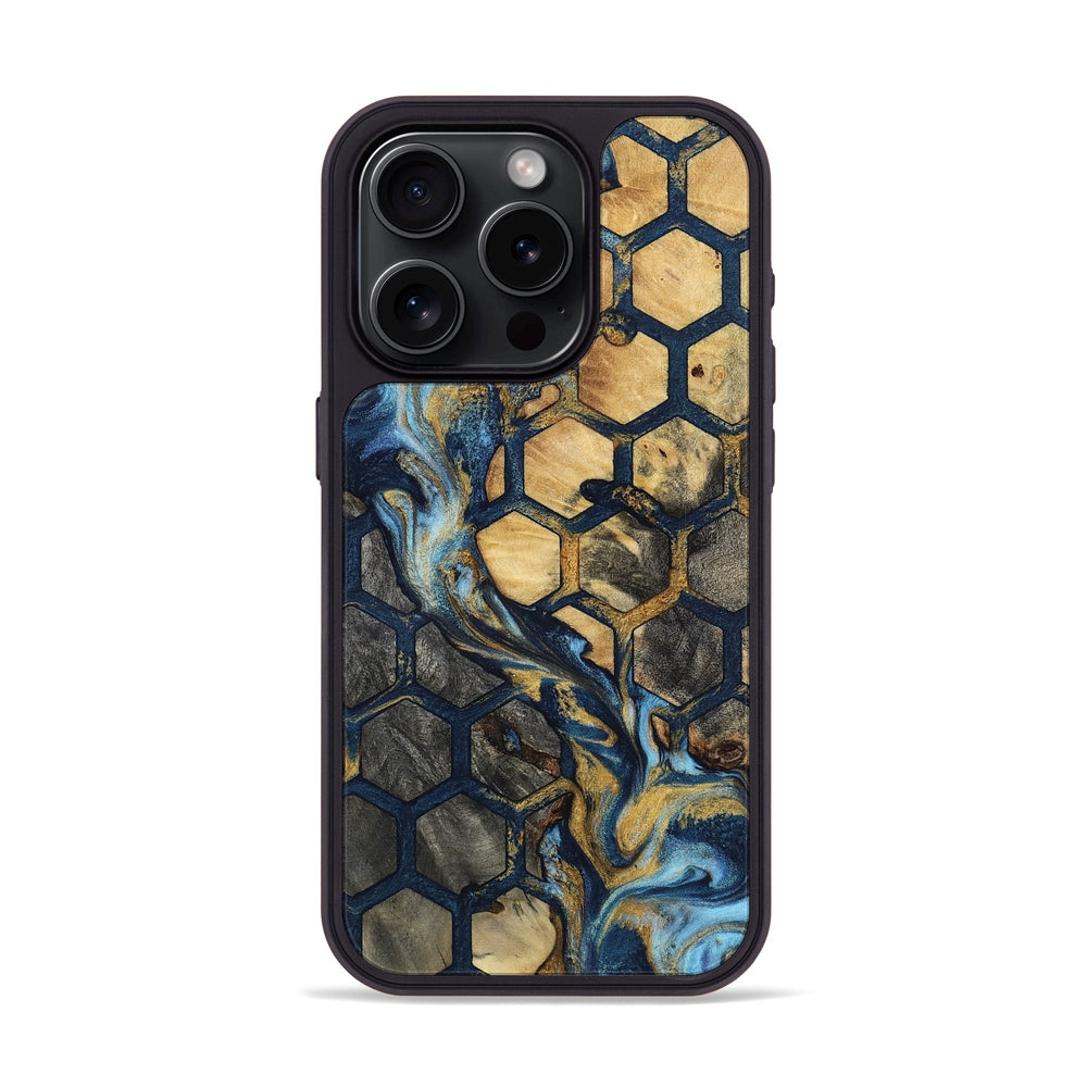 Kiana has a striking pattern of hexagons that create a sense of order. The rich blues and warm tones flow together, adding depth and movement to the wood.