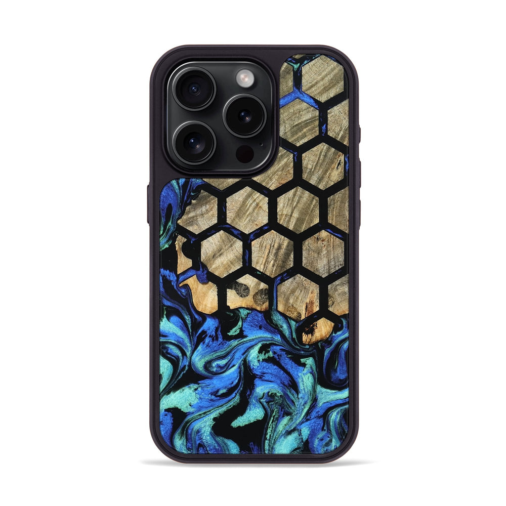 Kiara features a beautiful mix of Buckeye wood with swirling shades of blue and green. The pattern resembles a honeycomb, adding a unique texture to the artwork.