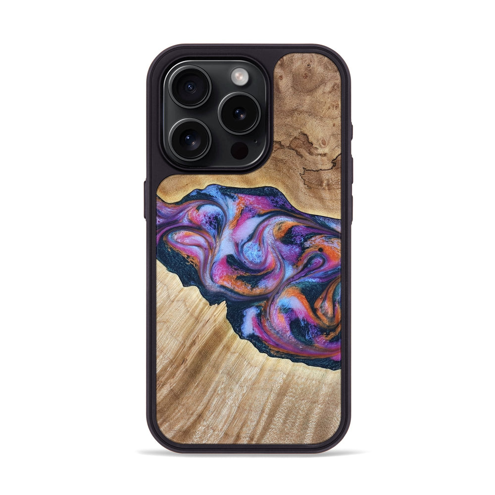 Lina has a beautiful blend of warm maple wood tones and vibrant colors swirling together. The pattern creates a striking contrast, adding depth and interest to the piece.