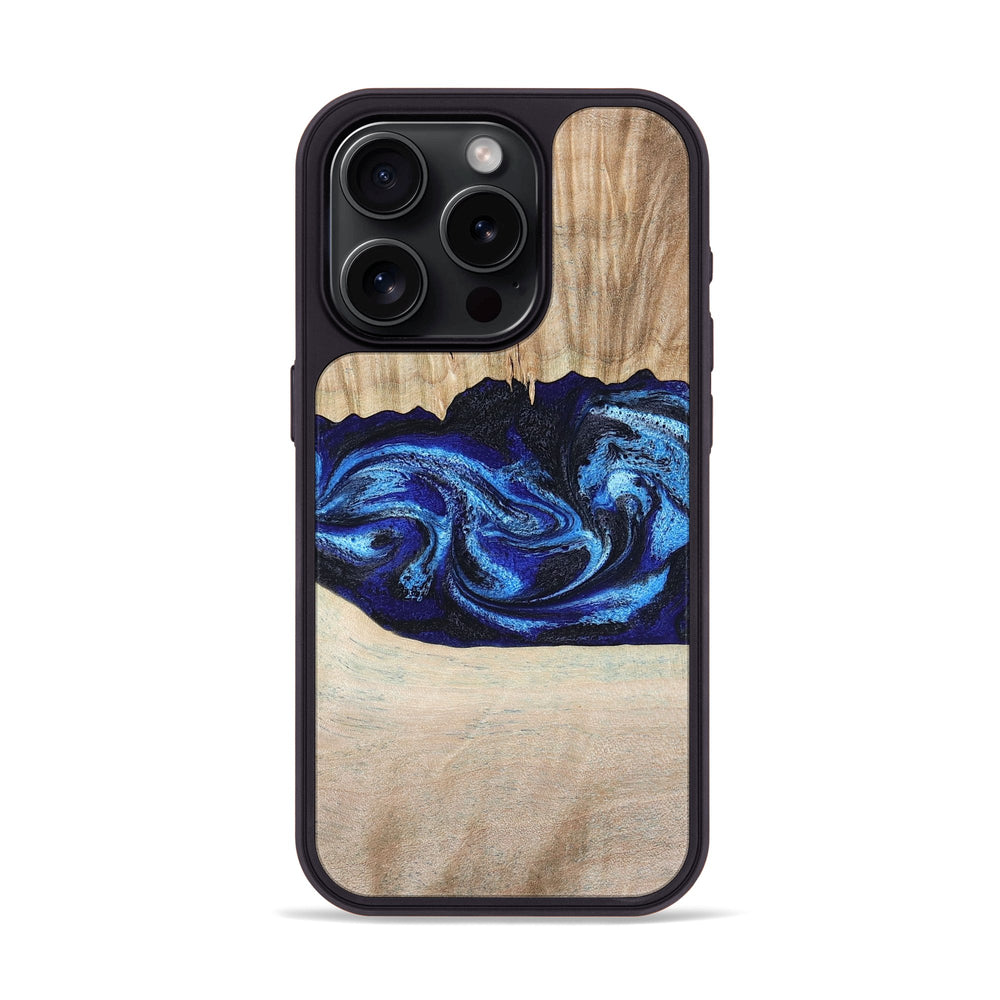 Muriel has a beautiful blend of light maple wood with rich, swirling blue patterns. The smooth grain contrasts nicely with the vibrant colors, creating a calming and inviting look.